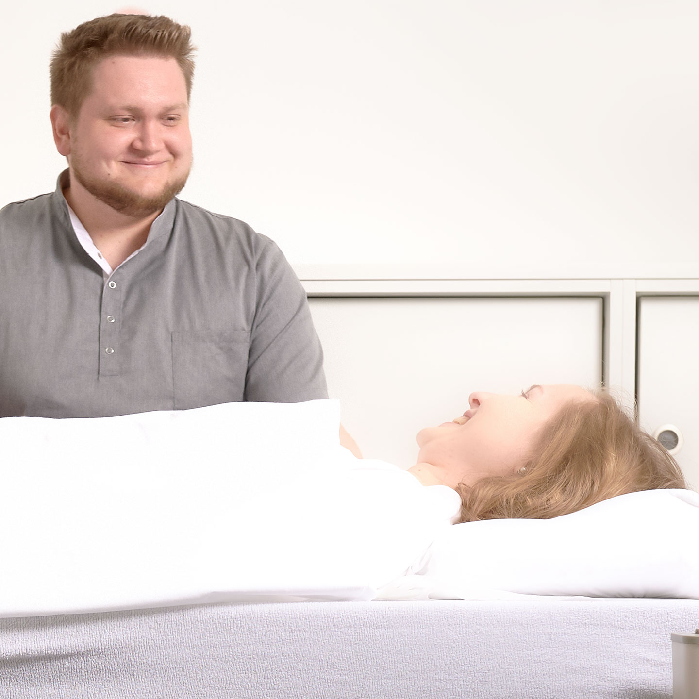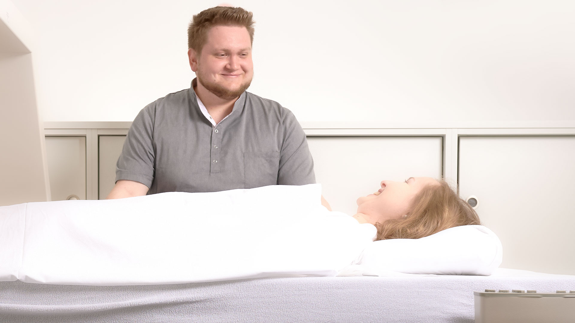 Mit sehr geringer Strahlendosis wird Ihr Knochenmineralsalzgehalt an der Lendenwirbelsäule, dem Oberschenkelhals oder Ihrem Unterarm gemessen. Ein spezielles, international vergleichbares Auswertungsprogramm wertet Ihre persönlichen Daten aus und stellt diese für Sie und Ihre behandelnden Ärztinnen & Ärzte übersichtlich – in Text und Diagrammform – dar.